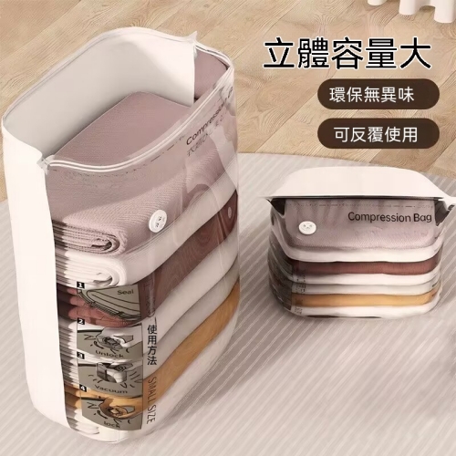 告別抽氣泵與電源 免抽真空壓縮袋 輕輕一壓排出空氣 防塵防潮 三倍空間輕鬆釋放